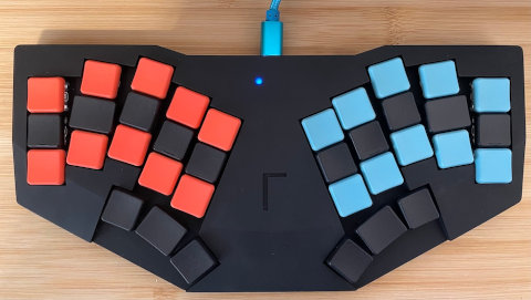 A 100%-ish keyboard with split thumb clusters – Mist by Modern Hobbyist.