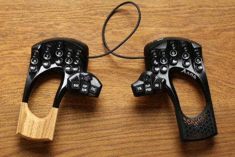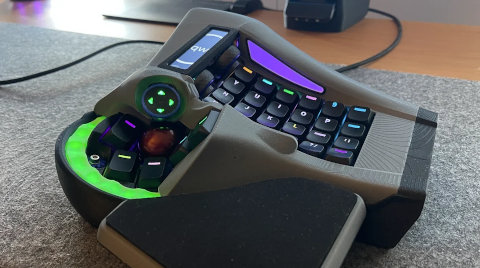 The 2025 version of lya Leonov's Lapa, an ergo split keyboard-mouse.