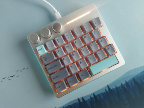 The Cybrix 29 by KiiBOOM is a wired 29-key hotswappable Hall-effect gaming (half-)keyboard with lots of RGB effects.