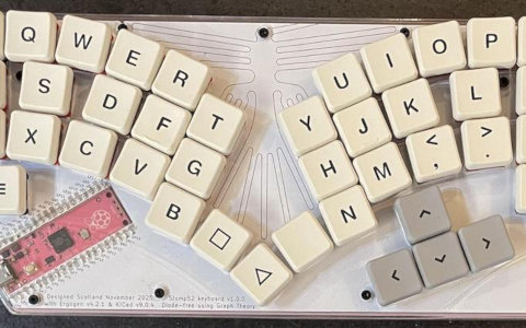 A Bluetooth diode-free 36-key ergonomic keyboard PCB by Peter Cock: Gamma Omega Hesse – using graph theory.